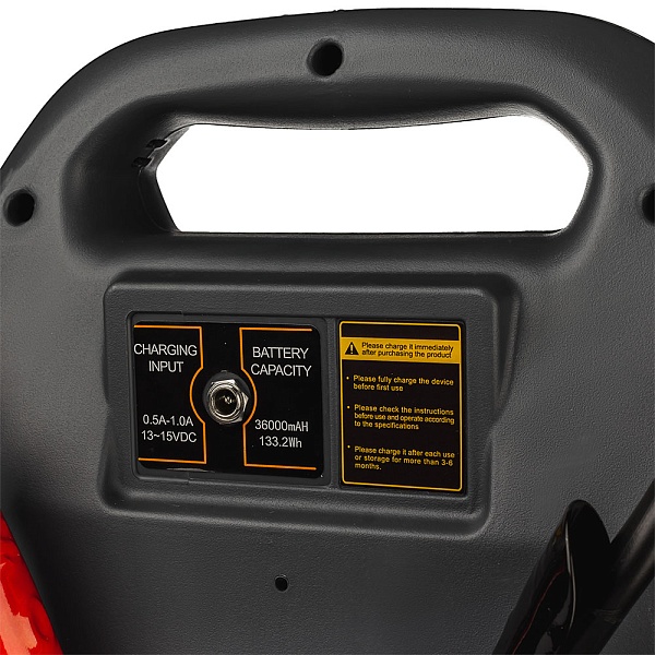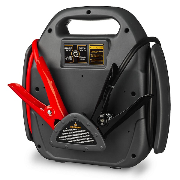 В устройство встроена защита от перегрузок, коротких замыканий и перегрева. Устройство оснащено разъемом USB и разъемом прикуривателя и может использоваться для подзарядки телефонов и других гаджетов. В комплекте гибкие медные провода с высокой пропускной способностью. Компактный пластиковый корпус и удобная ручка для переноски. Для удобства работы в перчатках бустер имеет большие кнопки и тумблеры. Оснащен светодиодным фонарем с 5 режимами, который можно использовать при работе в темное время суток или в качестве дополнительного источника питания. Габариты — 300х145х300 мм.