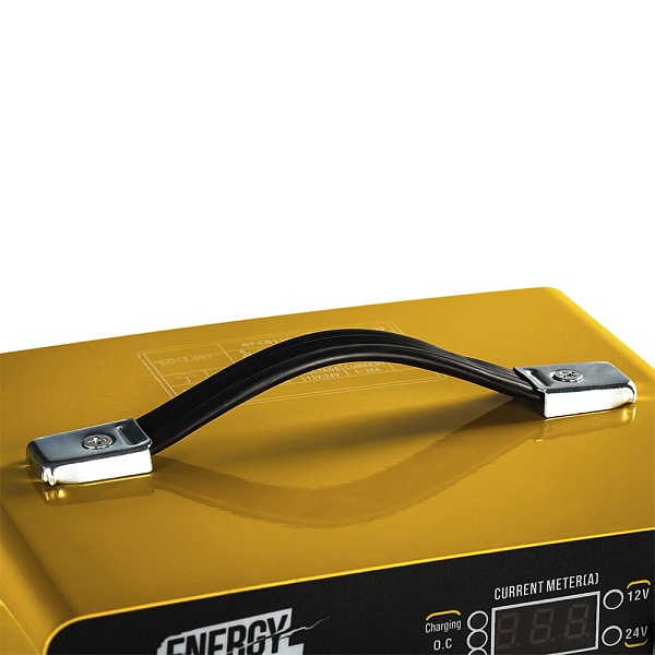 В устройство встроена защита от короткого замыкания и перегрева силовых элементов и трансформатора. Компактный корпус оснащен рукоятью для удобной переноски. Для контроля зарядки предусмотрен амперметр.