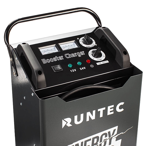 Пуско-зарядное устройство незаменимо в ситуациях, когда машина не заводится из-за разрядившегося аккумулятора. Чаще всего необходимость использования пускового устройства возникает зимой, когда от холода снижается мощность аккумулятора. Однофазное пуско-зарядное устройство RUNTEC RT-CB2000 предназначено для зарядки свинцовых и гелевых аккумуляторов с напряжением 12 В и 24 В для запуска бензиновых и дизельных двигателей мотоциклов, легковых и грузовых автомобилей, строительной и сельскохозяйственной техники. Не имеет встроенного аккумулятора.