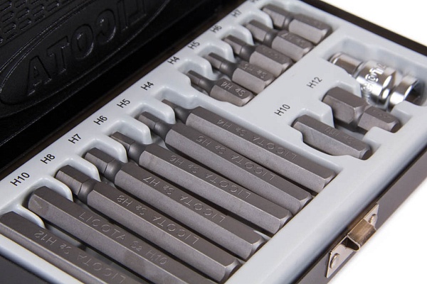 Набор бит шестигранных Licota ABS-80001. Комплект из 15 предметов в пластиковом футляре с ложементом предназначен для работы с крепежом разных размеров с внутренним профилем Hex (шестигранник).