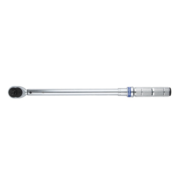 Нажимной фиксатор у верха рукоятки обеспечивает надежную блокировку установленного момента, предотвращая случайное переключение. При достижении установленного момента происходит размыкание динамометрического механизма. Оператор слышит громкий щелчок и ощущает его рукой.