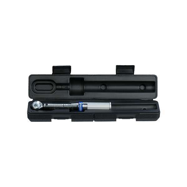Нажимной фиксатор у верха рукоятки обеспечивает надежную блокировку установленного момента, предотвращая случайное переключение. При достижении установленного момента происходит размыкание динамометрического механизма. Оператор слышит громкий щелчок и ощущает его рукой.