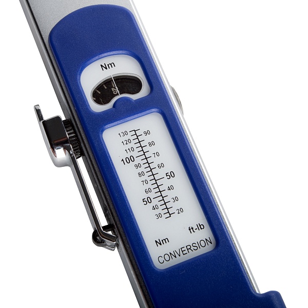Конструкция измерительной шкалы с одним окошком - для простой и точной регулировки. Момент выставляется в Нм, но на ручке есть большая шкала соответствия Ньютонов на метр фунтам на дюйм.