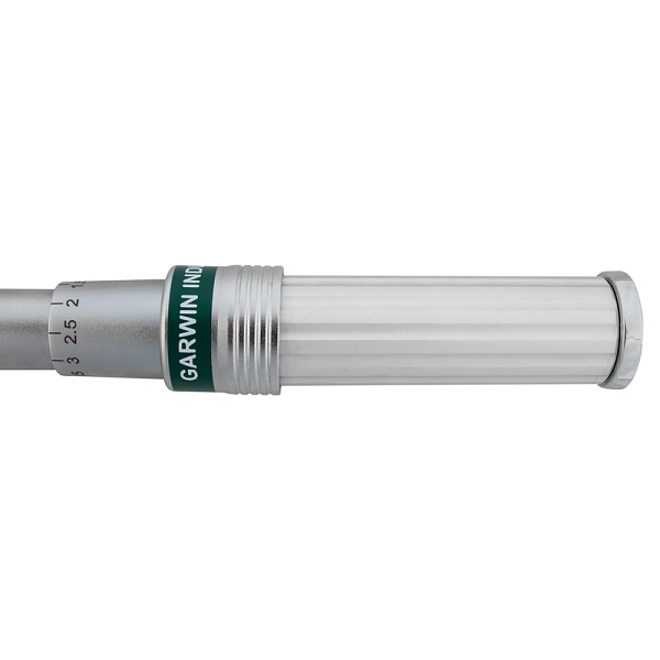 Нажимной фиксатор у верха рукоятки обеспечивает надежную блокировку установленного момента, предотвращая случайное переключение. При достижении установленного момента происходит размыкание динамометрического механизма. Оператор слышит громкий щелчок и ощущает его рукой.