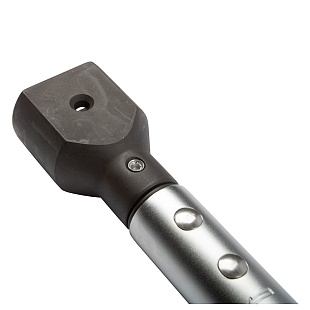 Нажимной фиксатор у верха рукоятки обеспечивает надежную блокировку установленного момента, предотвращая случайное переключение. При достижении установленного момента происходит размыкание динамометрического механизма. Оператор слышит громкий щелчок и ощущает его рукой.
