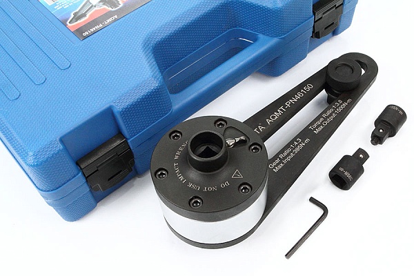 Усилитель крутящего момента (мультипликатор) ручной с опорой на головку Licota AQMT-PN46150 для усиления входного крутящего момента в соответствии с установленным коэффициентом. Используется для обслуживания и ремонта тяжелого грузового транспорта, морских судов, крупной строительной, промышленной техники, фланцевых соединений и объектов дорожно-транспортной инфраструктуры.
