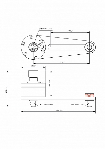 Размер привода - ½ дюйма. Размер выходного квадрата - ¾ дюйма. Передаточное число - 1:3,8. Максимальный крутящий момент - 1500 Нм.