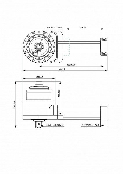 Размер привода - ¾ дюйма. Размер выходного квадрата - 1-½ дюйма. Передаточное число - 1:23,1. Максимальный крутящий момент - 10000 Нм.