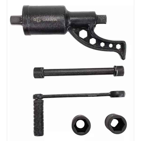 Конструктивно гайковерт-"мясорубка" представляет собой редуктор с большим передаточным числом, который позволяет сорвать “прикипевшую” гайку или болт. В комплекте с балонным редукторным ключом поставляются две головки для для работ с крепежом разных размеров.