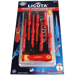 Набор отвертка со сменными вставками 7 в 1 VDE 1000В, Licota, ASD-CVS101K