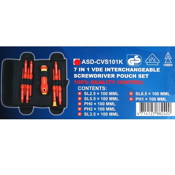 Набор отвертка со сменными вставками 7 в 1 VDE 1000В, Licota, ASD-CVS101K