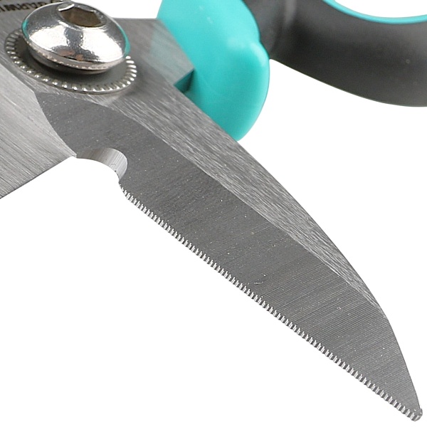 Двухкомпонентные эргономичные кольца ножниц выполнены из полипропилена и TPR, что исключает возможность выскальзывания инструмента из рук.