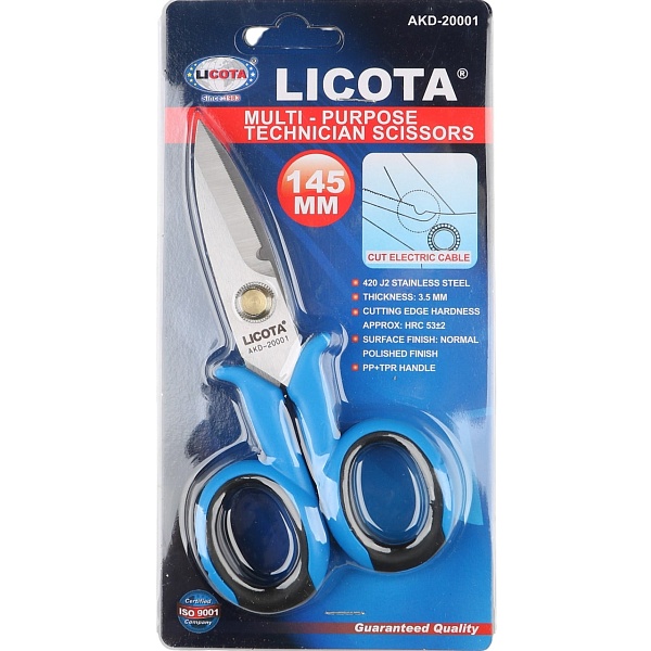 Ножницы электрика Licota AKD-20001 с выемкой для снятия изоляции. Применяются для резки и зачистки кабелей при слесарно-монтажных и электромонтажных работах.