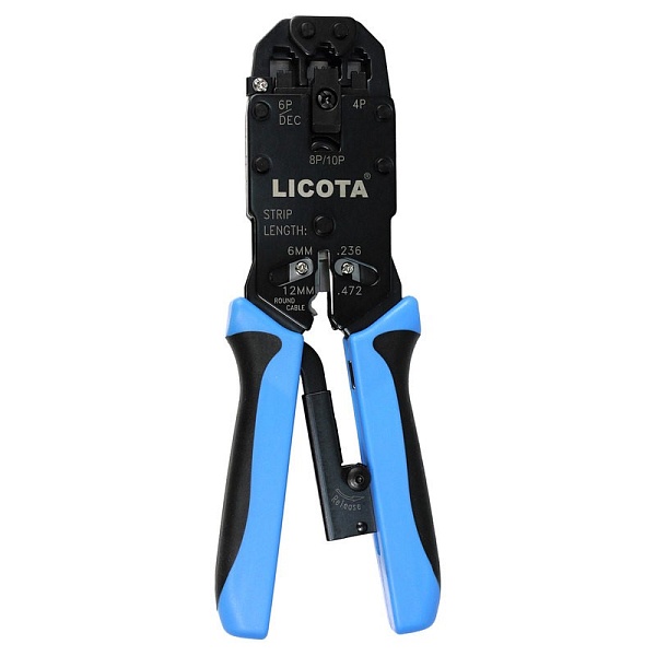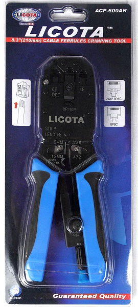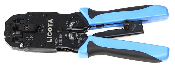 Инструмент для обжима коннекторов RJ-45, RJ-11/12 и зачистки витой пары с трещоткой, Licota, ACP-600AR