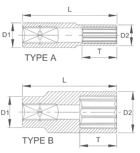 Тип головки - внутренний шестигранник (Hex). Размер - 35 мм. Размер привода — 1 дюйм (25,4 мм).