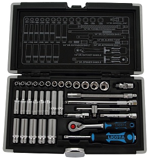 Набор торцевых головок 1/4" 34пр. 4-14 мм, Licota, ALK-0101F
