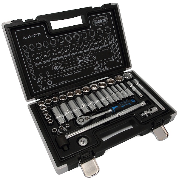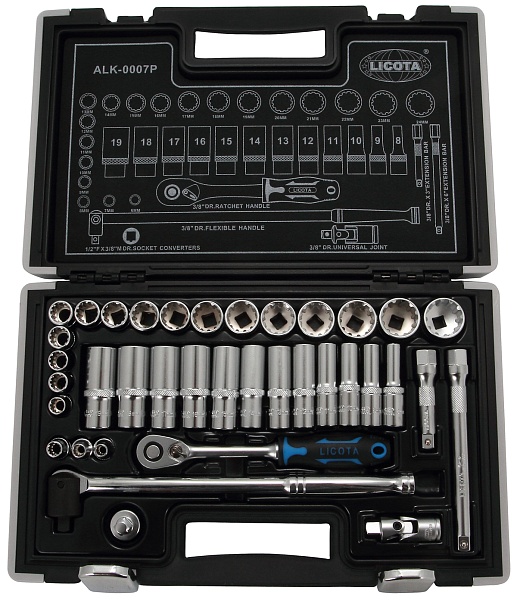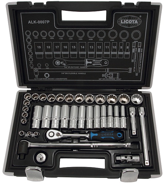 Набор торцевых головок 3/8" 12-ти гранных spline 37 пр., 6-24 мм, Licota, ALK-0007P