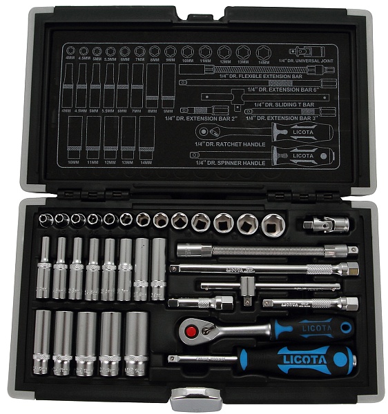 Набор торцевых головок 1/4" 34пр. 4-14 мм, Licota, ALK-0101F