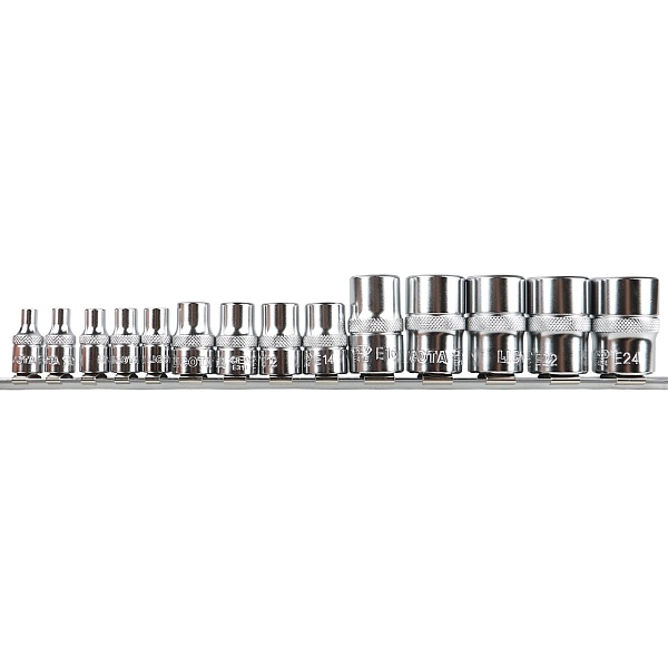 Набор головок Е-профиль Е4-Е24 1/4", 3/8", 1/2" 14пр. на линейке, Licota, TBS-11005