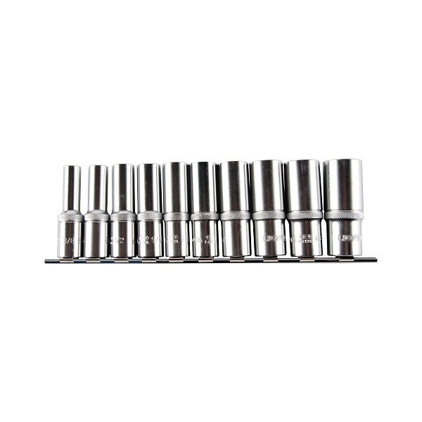 Набор глубоких торцевых головок Licota TBS-23006 из хром-ванадиевой стали предназначен для ручного монтажа/демонтажа резьбового крепежа с дюймовыми размерами. Набор из 10 предметов на металлическом держателе-линейке.