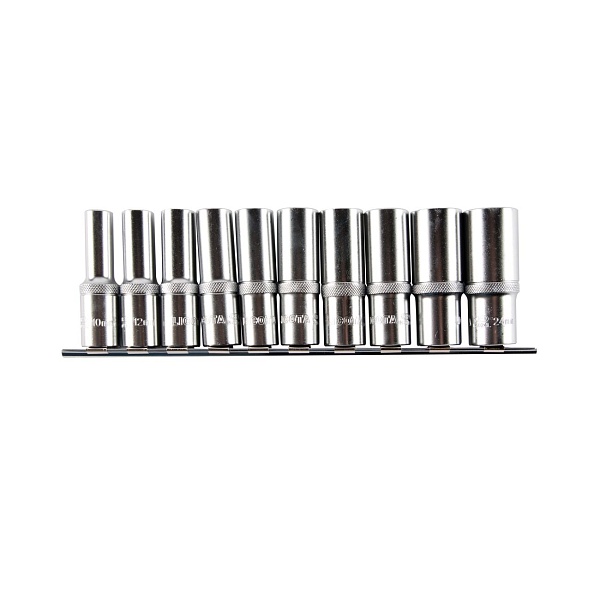 Головки торцевые глубокие, 10; 12; 13; 14; 16; 17; 18; 19; 22; 24 мм - 10