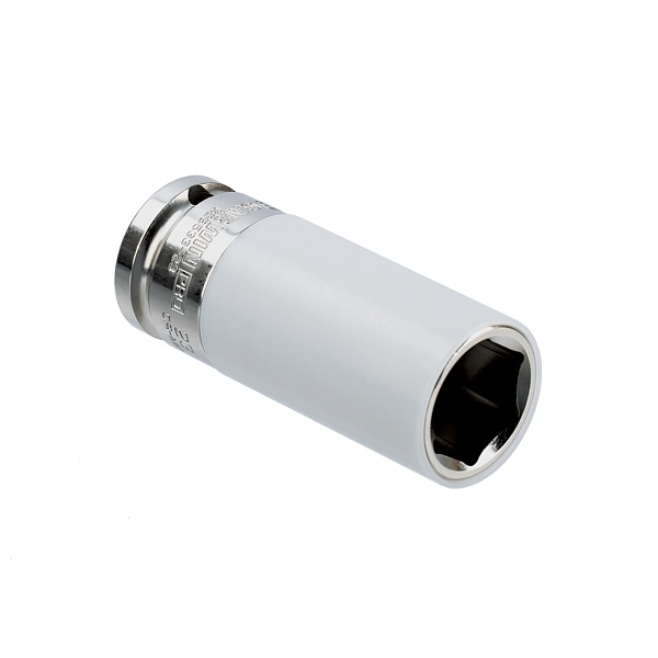 Головка оснащена защитным пластиковым чехлом, который предохраняют крепеж и лакокрасочное покрытие диска от повреждений. Цветовая кодировка позволяет быстро найти головку нужного размера в составе набора.