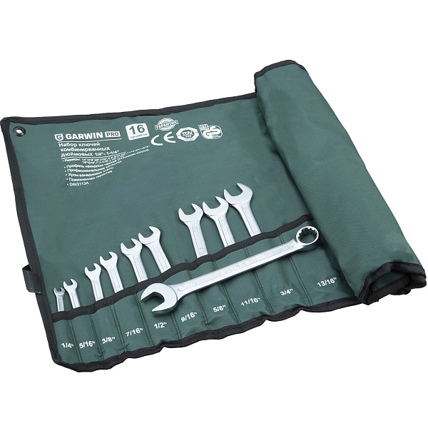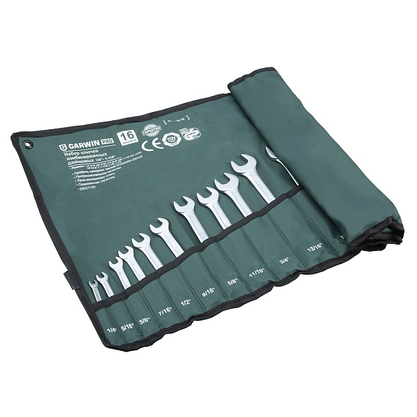 Набор комбинированных ключей дюймовых GARWIN PRO 606515-16 — комплект для резьбовых крепежей, состоящий из 16 предметов. В инстурментах совмещены два рабочих профиля — рожковый и накидной, что позволяет использовать их в любых условиях с большим удобством. Ключи с дюймовыми размерами необходимы для ремонта и обслуживания техники, оборудования или автомобилей, произведенных в странах использующих дюймовую систему мер.