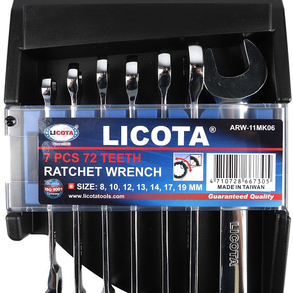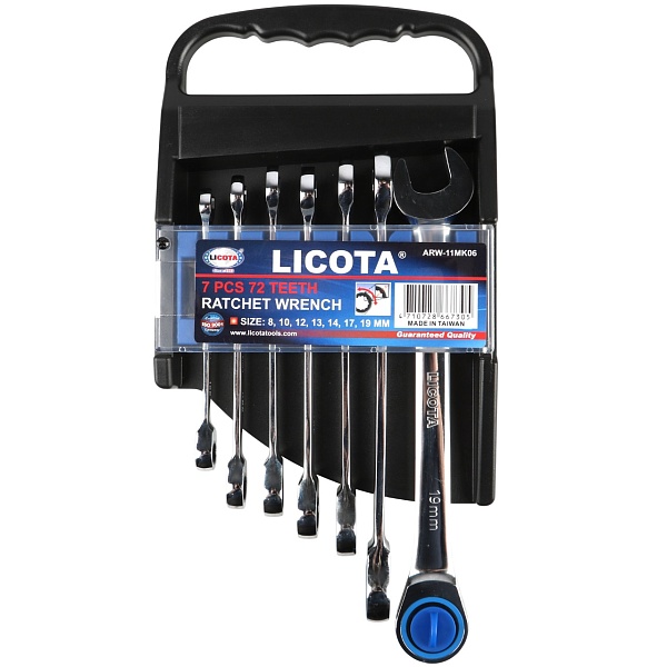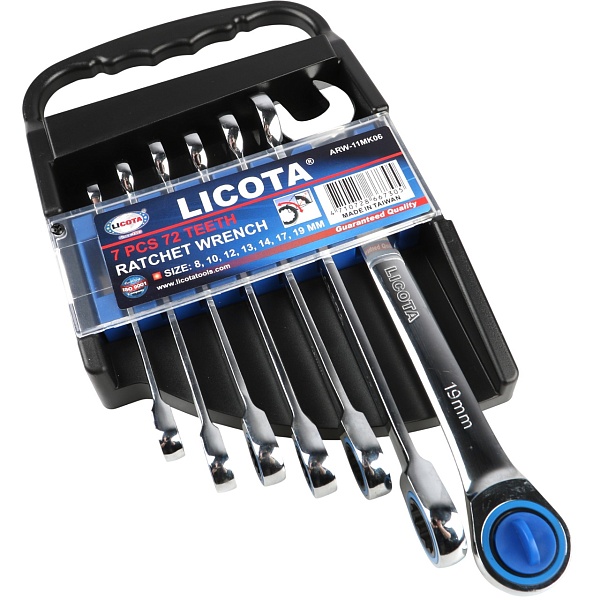 Набор ключей трещоточных комбинированных 72 зуба 8-19 мм, 7 предметов на пластиковом держателе, Licota, ARW-11MK06