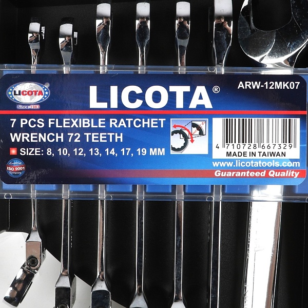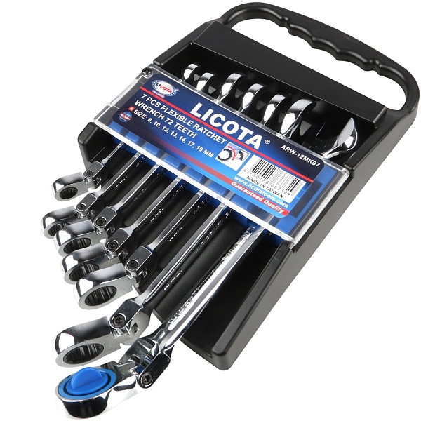 Набор ключей трещоточных с полукарданом 72 зуба 7пр., Licota, ARW-12MK07