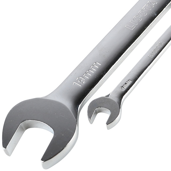 Комбинированные трещоточные шарнирные ключи в наборе выполнены из хром-ванадиевой стали. Эта комбинация обеспечивает высокую прочность, и способность переносить сильные длительные нагрузки без нарушения геометрии инструмента. Хромированное покрытие и микрофинишная полировка обеспечивает максимальную защиту от влаги и развития коррозии.