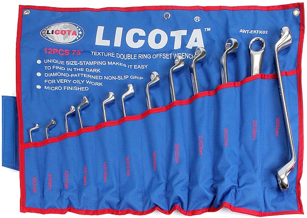 Набор ключей накидных 75гр. 12пр., 6-32 мм, Licota, AWT-EKFK02