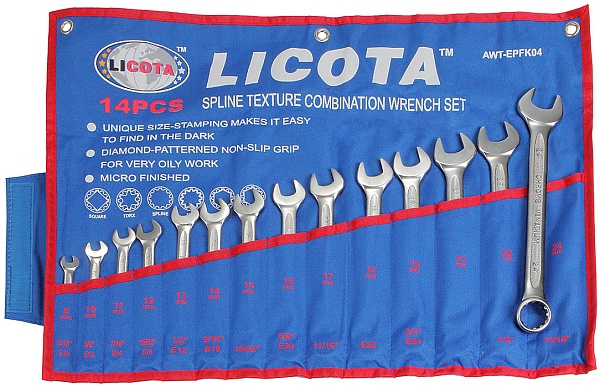 Набор ключей комбинированных текстурных 14пр. 8-24 мм Spline, Licota, AWT-EPFK04