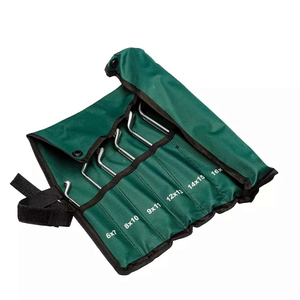 Поставляется в свертке с кармашками, который надежно защищает их от любых загрязнений. Каждый ключ располагается в отдельном кармане чехла с подписанным типоразмером для быстрой идентификации. В скрученном виде набор занимает совсем немного места, вы легко сможете поместить его в багажник, рюкзак или рабочую сумку.