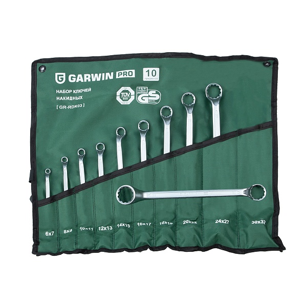Набор ключей накидных 75° 10 предметов 6х7-30х32 мм, GARWIN PRO, GR-RDK03