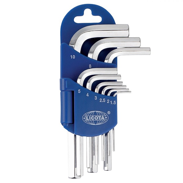 Набор шестигранников угловых коротких 9пр. 1,5-10 мм, Licota, 2HW10091DPM