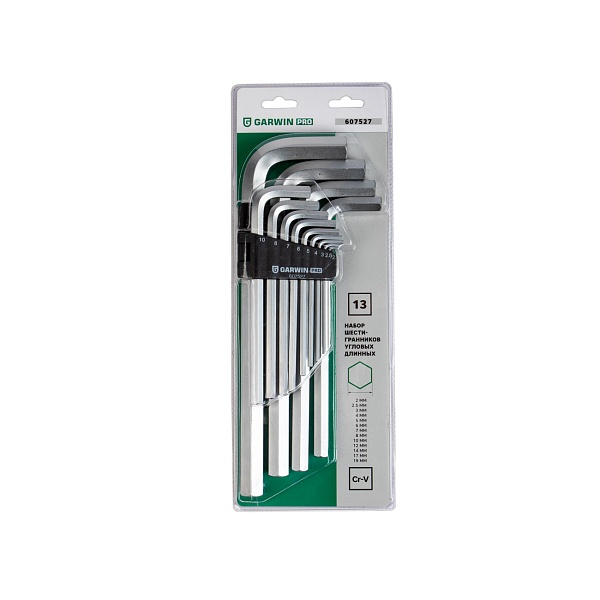 Набор шестигранников угловых длинных, 13 пр. 2-19 мм, GARWIN PRO, 607527