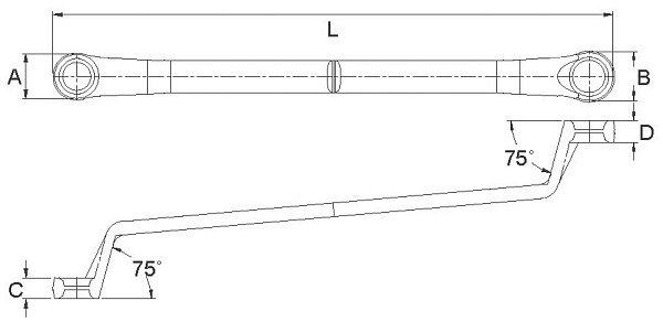 Ключ накидной, двусторонний, изогнутый, 75°, 8 мм, 9 мм, Licota, AWT-EBS0809