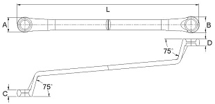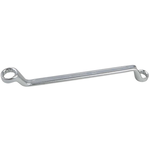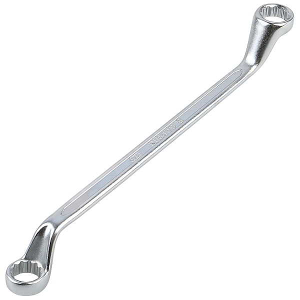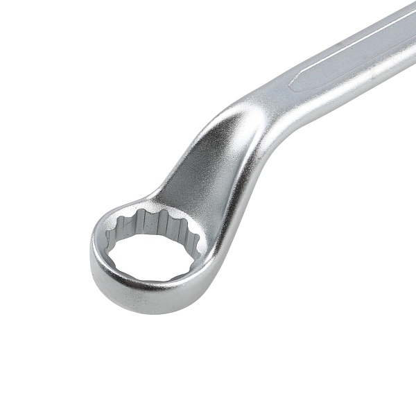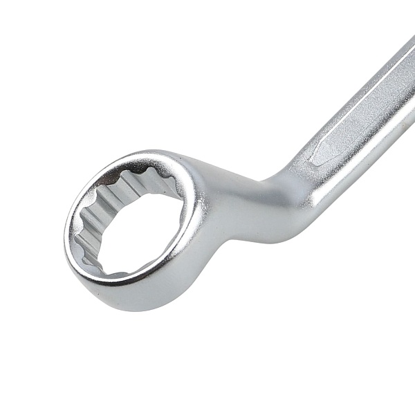Матовая поверхность обеспечивает надежный хват и препятствует выскальзыванию инструмента из рук. Профиль накидной части из 12 граней подходит к головкам болтов и гайкам как 6-, так и 12-гранного профиля. Изогнутая под углом 75° рабочая часть ключа дает возможность работы с крепежом, расположенным в углублениях.