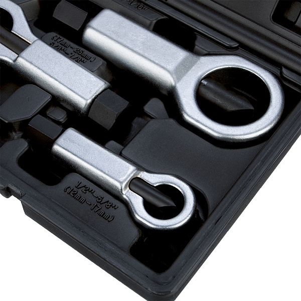 Набор для безопасного освобождения закисших или поврежденных резьбовых соединений от гаек, которые невозможно снять ручным или ударным инструментом.