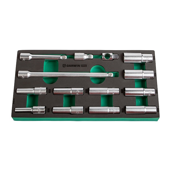 Набор торцевых головок глубоких 1/2" 10-24 мм, 14 пр. в ложементе EVA, GARWIN PRO, 646067