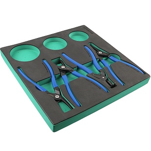 Ложемент выполнен из вспененного каучука (EVA), который отлично переносит воздействие масел, кислот и других агрессивных веществ, которые используются в автомастерских или производственных цехах. Он не деформируется и сохраняет свою форму даже при механическом воздействии. Инструменты жестко зафиксированы и плотно лежат в своих гнездах, не болтаясь и не выпадая. Набор можно брать с собой на выездной ремонт или положить в багажник авто, где он займет минимум места.