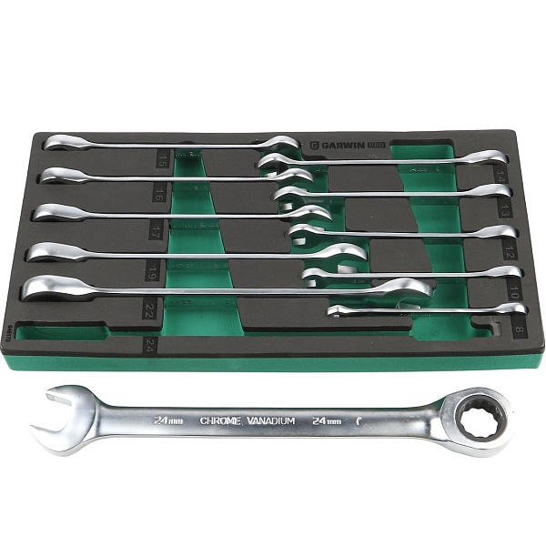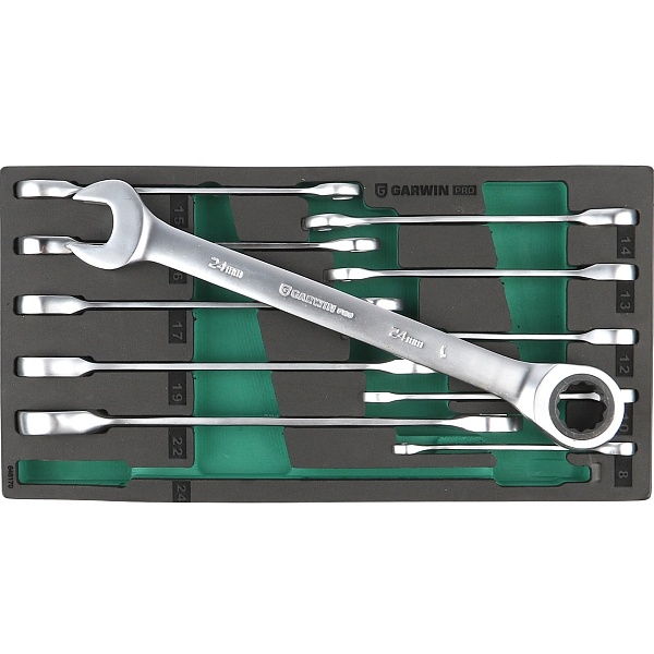 Набор ключей комбинированных трещоточных 8-24 мм, 11 пр. в ложементе EVA, GARWIN PRO, 646170