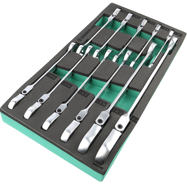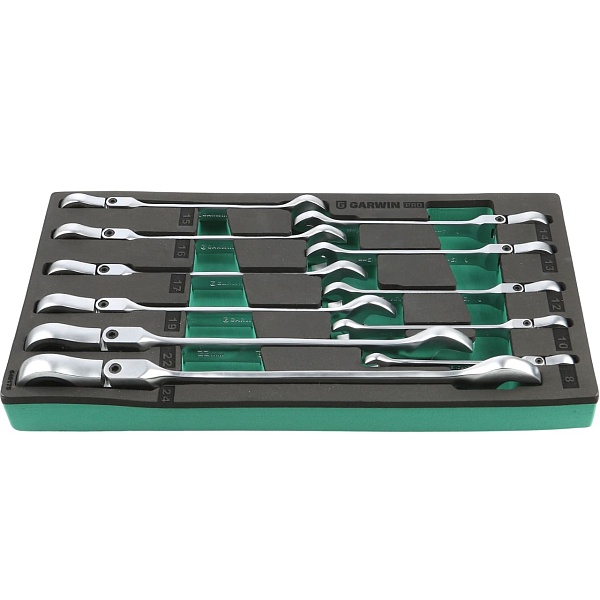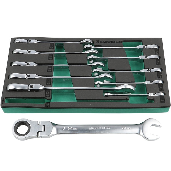 Набор ключей комбинированных трещоточных с шарниром 8-24 мм, 11 пр. в ложементе EVA, GARWIN PRO, 646175