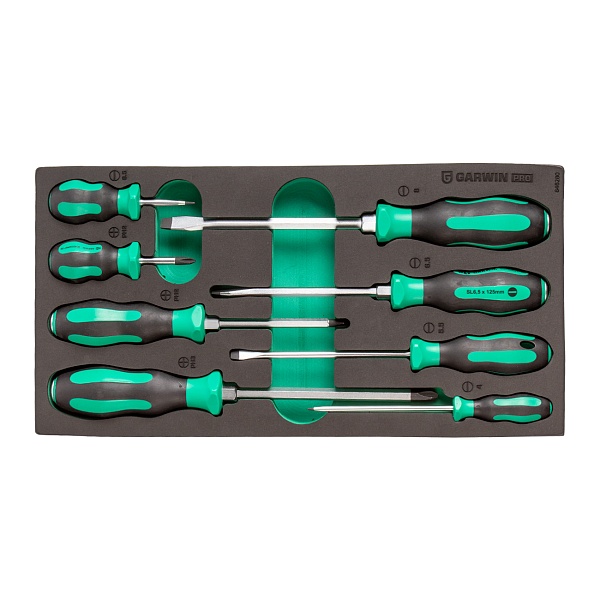 Набор отверток цельнометаллических и стандартных 8 пр. в ложементе EVA, GARWIN PRO, 646280