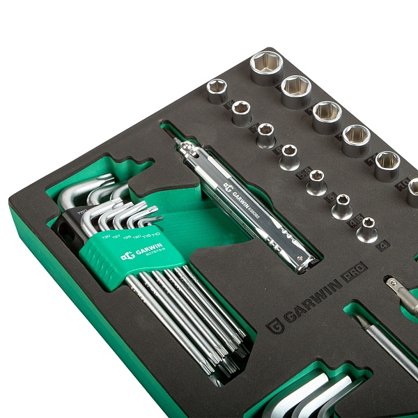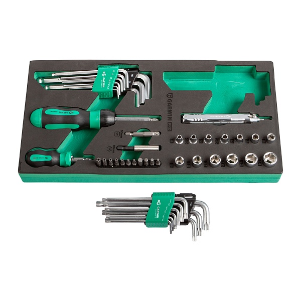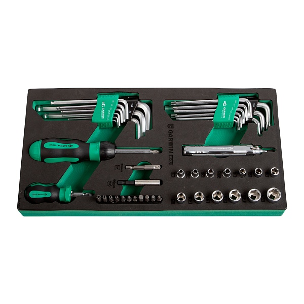 Набор отверток универсальных, торцевых головок 1/4", Г-образных ключей HEX, TORX с отв., 21 пр. в ложементе EVA, GARWIN PRO, 646292