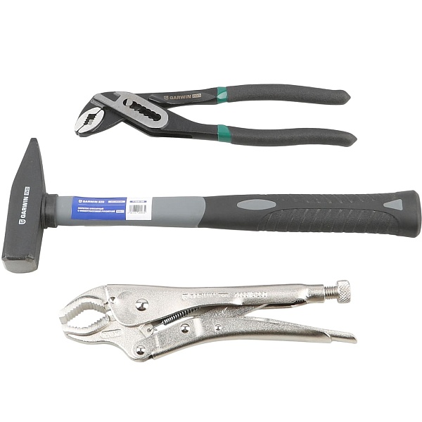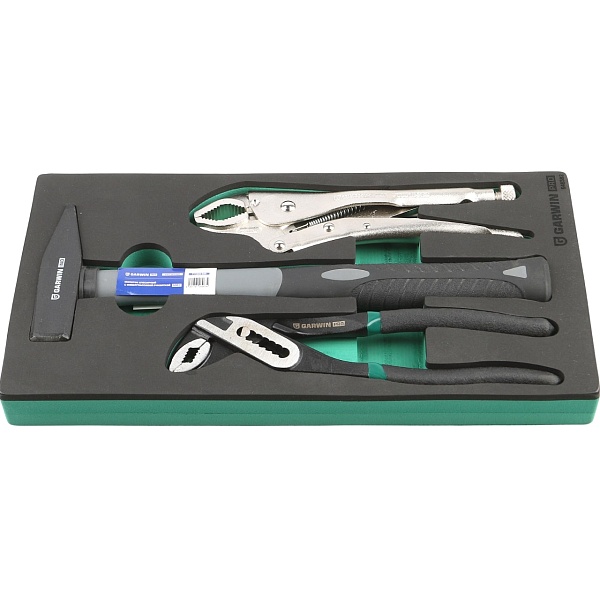 Набор слесарного инструмента: ручные тиски, переставные клещи, молоток 500 г, 3 пр. в ложементе EVA, GARWIN PRO, 646382