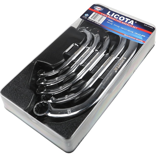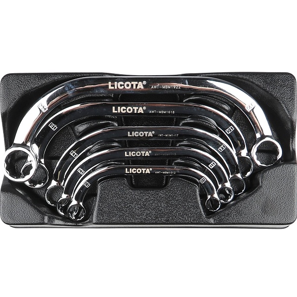Набор ключей накидных изогнутых "стартерных" 5пр. 10 - 22 мм в ложементе, Licota, ACK-274005
