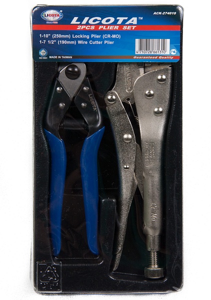 Набор: ручные тиски-струбцина и кабелерез. 2 пр., в ложементе, Licota, ACK-274010