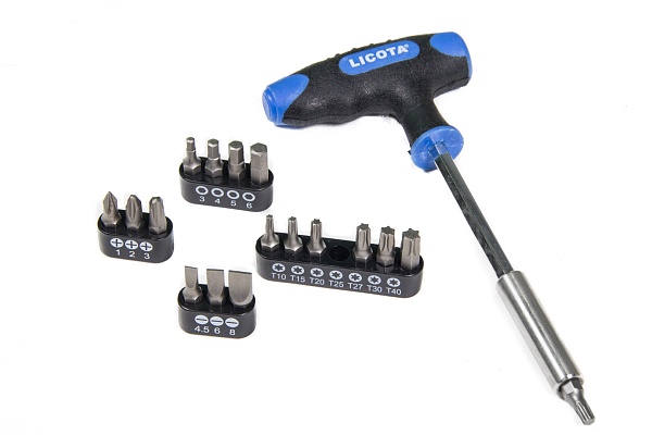 Набор включает стандартные и свечные головки ходовых размеров, биты PH, SL и H самых распространенных размеров, а также различные аксессуары к ним - воротки, удлинители, адаптер и карданы.