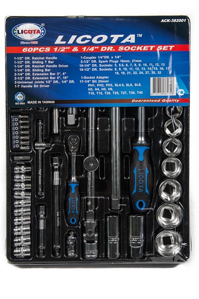 Набор торцевых головок 1/4" и 1/2" 60 пр. в ложементе, Licota, ACK-382001